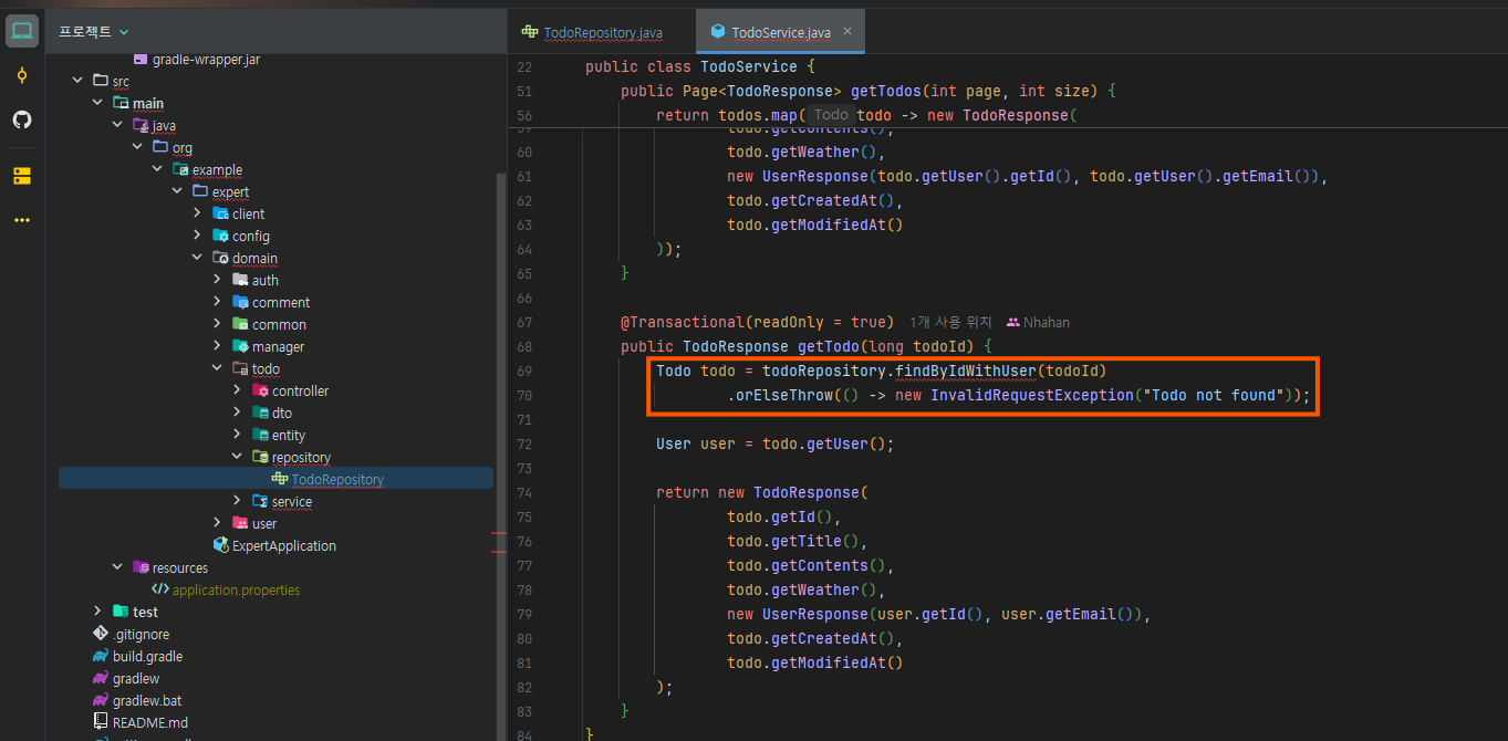그렇기 때문에 todo.user에 대해 null 체크를 해줘야 한다.