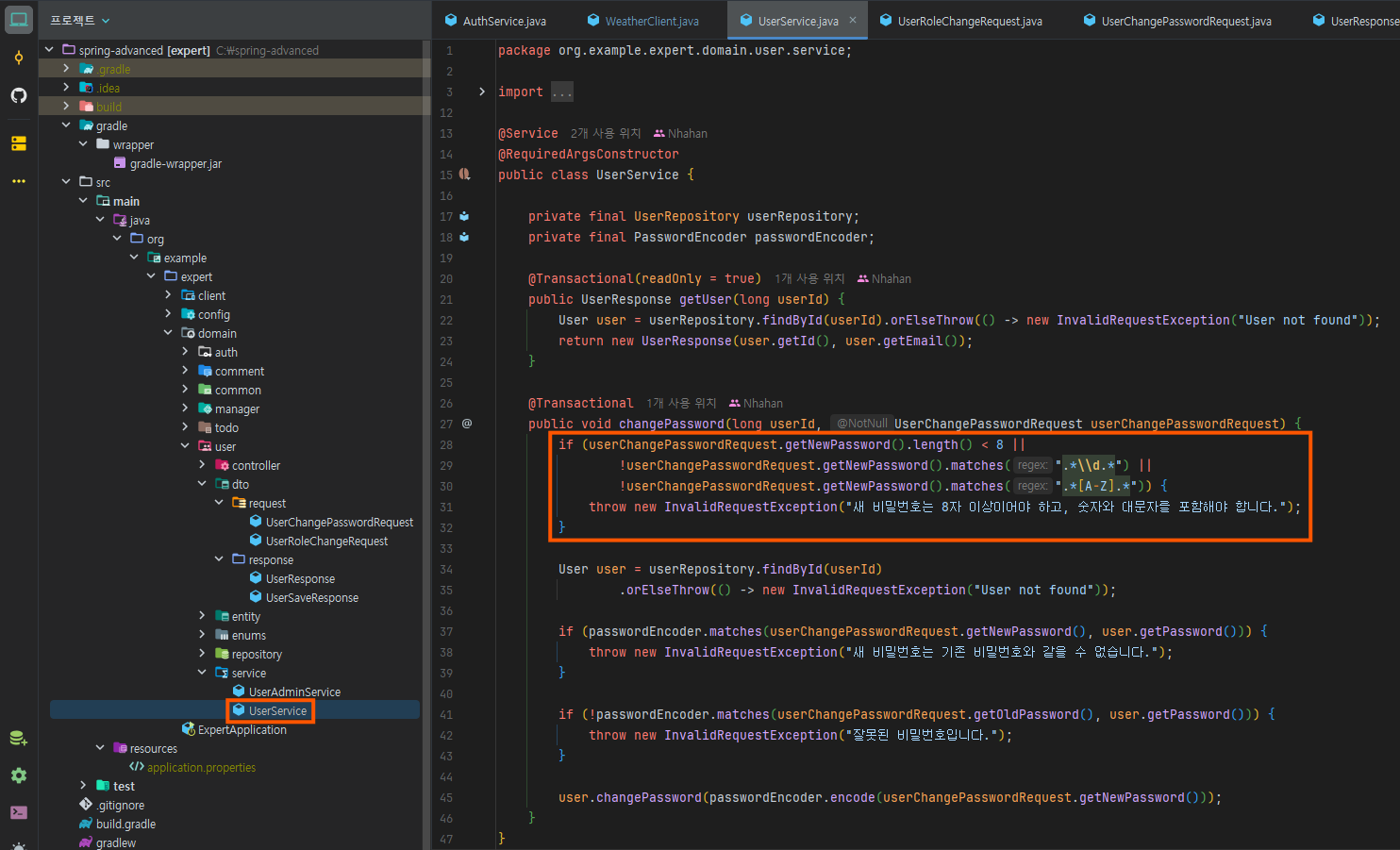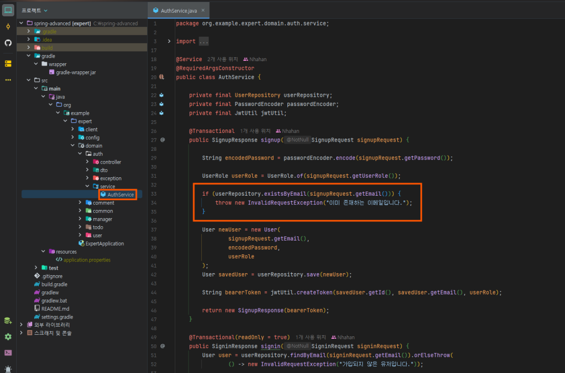 테스트 코드를 확인해 줬으니 서비스 로직도 확인하자.