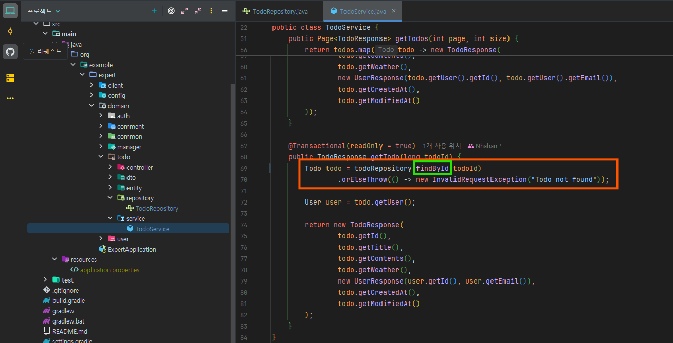 그렇기 때문에 레포지토리와 서비스에서 메서드를 변경해줘야 한다!
