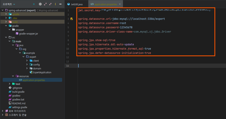DB설정이나 JWT 설정 등을 설정하는 파일이기 때문에 매우 중요하다!
