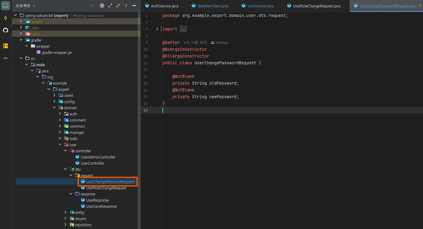 자 이번에는 주어진 코드를 해당 API의 요청 DTO에서 처리할 수 있게 개선해 보자!
