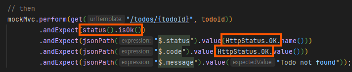 문제 : 테스트 패키지 org.example.expert.domain.todo.controller의 todo_단건_조회_시_todo가_존재하지_않아_예외가_발생한다() 테스트가 실패 중. 정상적으로 수행되어 통과할 수 있도록 수정이 필요함.
