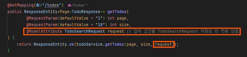 서치용 요청 DTO를 만들어준다! 그리고 이제 서비스, 레포지토리, 컨트롤러를 수정해주면 된다!